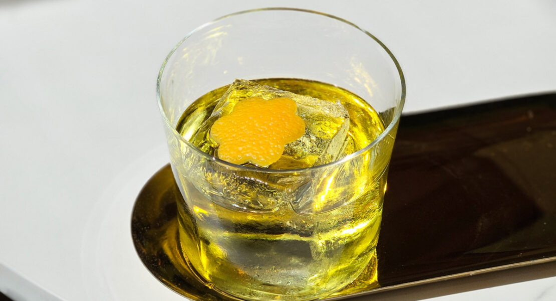 This twist on a classic Old Fashioned gets an appealing smoky note from the ice cube made with Lapsang Souchong, a Chinese black tea whose leaves are dried over burning pinewood for a rich, bold and earthy flavour with subtle bonfire notes.